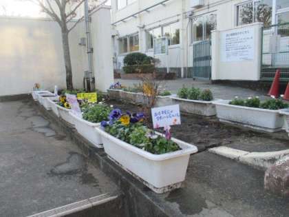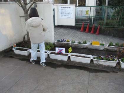 正門のプランターなどの植物には環境委員会の皆さんが分担して水をあげています。自分の当番の日を忘れずに、きちんと役割を果たす姿に感心します。プランターからフリージアの芽が育ってきました。どんな花が咲くのか、楽しみです。