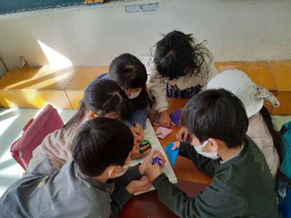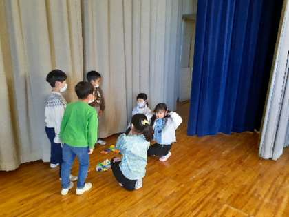 3時間目は1年生2、3、4組が喜多見保育園の年長さんと交流をしました。2学期の交流の経験を生かし、年長さんが楽しんでくれそうな遊び、いっしょにできそうな遊びを1年生が考え、準備してきました。折り紙やドッジボール、クモ歩きで鬼から逃げるスパイダー鬼ごっこなどバラエティーに富んだ遊びで年長さんを楽しませました。お互いの名前を呼び合い仲を深めている様子が見られました。