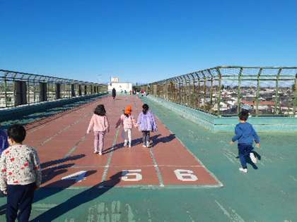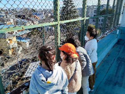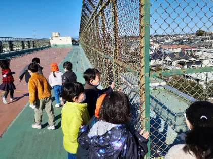 1年生とはあと保育園の交流会では、園児を屋上にもつれていきました。屋上から見えた富士山やスカイツリーに感激の様子でした。遠くまで見える景色を長い時間楽しんでいました。