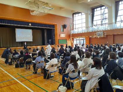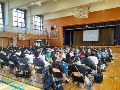 昨日、体育館で来年度入学する新一年生保護者向けの入学説明会を実施しました。たくさんの保護者の皆様にご来校いただきました。対面での実施は3年ぶりでした。お互いの顔が見える、また実際に学校を見ていただけるというのはお互いの安心につながりました。4月の新一年生の入学が待ち遠しくなる貴重な時間となりました。