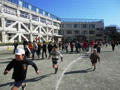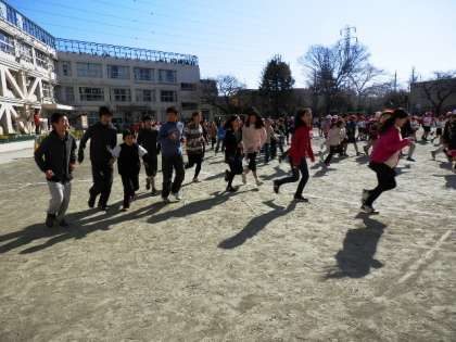 体つくり週間が始まっています。持久走や長縄などを20分休みに取り組んでいます。先週は雪のため、校庭での遊びや体育ができなかったので、久しぶりの青空の見える週となり、子どもたちは元気に外へ出てきました。今日は、校庭で、2年生・4年生・6年生が持久走をしていました。