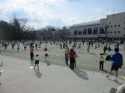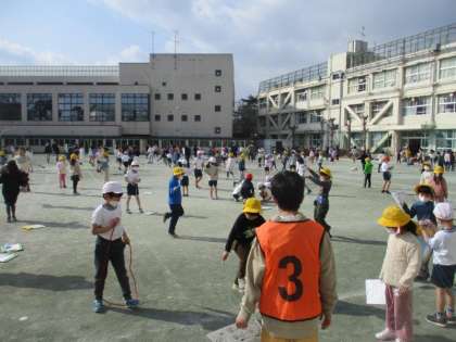 体力づくり月間では、短なわとびに取り組んでいます。休み時間には多くの子どもたちが校庭で取り組んでいます。運動委員会の子どもたちが下級生に跳んだ回数を教えてあげたり、跳び方を教えてあげたりしています。時にはお手本を見せてくれ、二重跳びをたくさん跳んでくれました。運動委員の目印は、オレンジ色のビブスです。とても頼りになる子どもたちです。