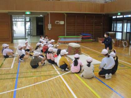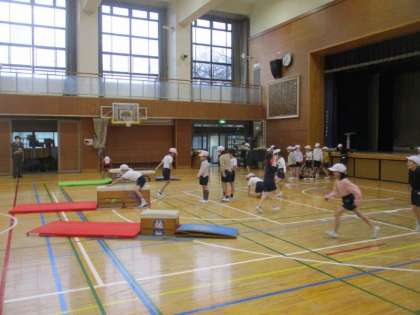 3年生が体育で跳び箱運動に取り組んでいます。「明正オリンピック」と題して、きれいに、大きく技を高められるよう努力しています。開脚跳びでは、「ドン」「バン」「ピタ」のリズムや、「足を開いて手を遠くに」「ひざを曲げてピタリと止まる」など、技のポイントに注意しています。自分の技に生かすだけではなく、ペアやトリオで教え合う時にも役立っているようです。「いいね!」「おしい!もう少し」のカードを見せAIながら、どの子も熱心に取り組んでいて感心しました。