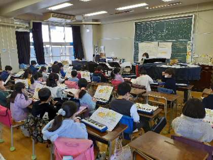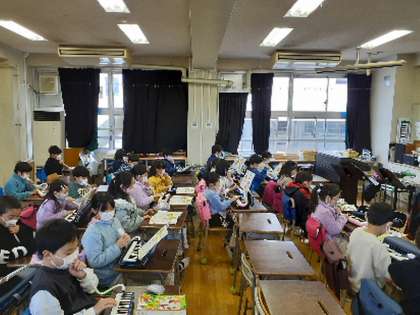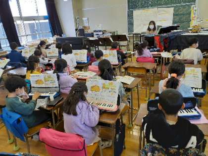 元気よく歌を歌い、教室が明るい雰囲気になりました。その後は鍵盤ハーモニカの演奏です。曲は「こぐまの2月」です。指を置く場所を確かめながら、徐々に滑らかに演奏できる子が増えていきました。みんなの演奏の音が重なり、響き合う様子がとても心地よく感じられました。子どもたちも同じように感じていたことでしょう。