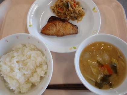 ごはん ぶりの照り焼き 切り干し大根の煮付け 白菜のみそ汁 牛乳