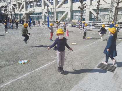 1ヶ月間、全校で取り組んできた短縄跳びも、今日が最終日です。縄跳びカードを見ると、できるようになったところの塗りつぶしが増えていて、たくさん頑張ってきたことが伝わりました。今日はとても温かく、袖を捲って短縄跳びをしている子がたくさんいました。努力すればできるようになることを実感し、継続して頑張ったことで体力も向上した有意義な体力づくり月間となりました。