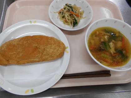 きなこ揚げパン 肉団子入り春雨スープ ナムル 牛乳