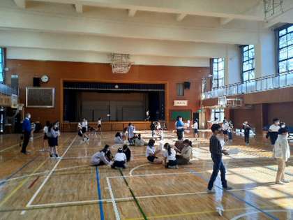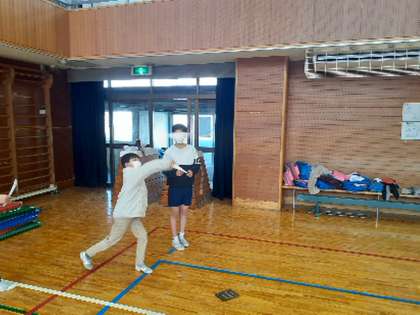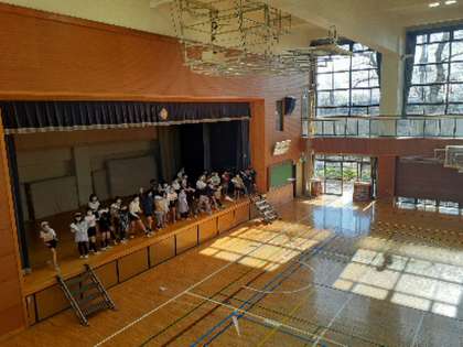 体育館で紙飛行機飛ばしをとおして、3年生と5年生が交流をしました。大きめの画用紙を使い、5年生が前もって調べてきた紙飛行機の折り方を優しく教えていました。一人一つ作り終えたら、ステージから紙飛行機を飛ばし記録を競い合いました。二つのグループに分かれて行いましたが、何と二つのグループ共に3年生が優勝していました。5年生は少し力みがあったようです。みんなとても楽しそうでした。