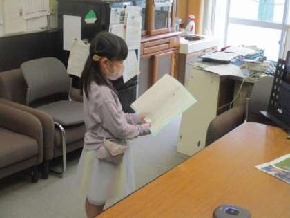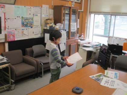 「児童の言葉」では、1年生の代表の子たちが発表してくれました。一年間を振り返って、給食がたくさん食べられるようになったことや縄跳びでいろいろな跳び方ができるようになったこと、勇気を出して声をかけて、友達をつくったこと、プールで目を開けたり、学習発表会のキーボードを弾いたりすることを練習したこと等を話してくれました。さらに、これからもあきらめずにがんばりたい、2年生でも友達を大事にしたい等、今後の目標も発表してくれました。