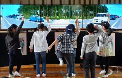 2年生を対象に「歩行者シミュレータ交通安全教室」が実施されました。3つのディスプレイを使い、様々な状況をシミュレータしながら、どのような行動をすれば事故にあわないかを考えました。子どもたちが歩くと画面が動くのでとても分かりやすく学ぶことができました。2年生になり、子どもだけで出かける機会があるかもしれません。安全に歩けるよう、交通ルールや道路の歩き方や気をつける場所をご家庭でも確認してください。