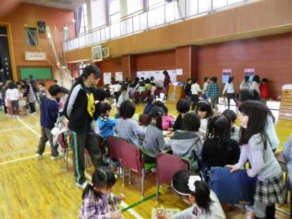 2年生は生活科の学習として、1年生とひまわりの子どもたちを招待し、お店屋さんを開きました。2年生の子どもたちが考えた思い思いのお店で、ゲームをしたり、手作り工作をしたり、楽しい2時間を過ごすことができました。2年生一人一人が、上級生に一歩進むことのできた時間でもあります。