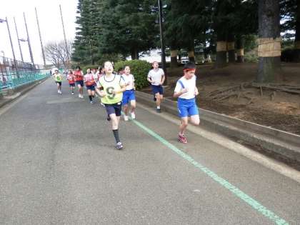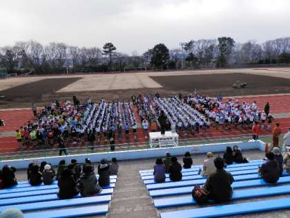 砧総合運動場で、砧小・山野小と3校合同持久走大会を実施しました。6年生は秋にも連合運動会で来た陸上競技場です。お昼を挟んで天気も良く、この時期としては予想以上の暖かな日となりました。3校の5・6年生が集まると、約700名となり、熱気にあふれるイベントとなりました。スタート地点は様々ですが、競技場のトラックが1周と公園の中を走りおよそ1.5kmを全員が走り切りました。各校の保護者の皆さんも応援に来てくださり、大変盛り上がりました。
