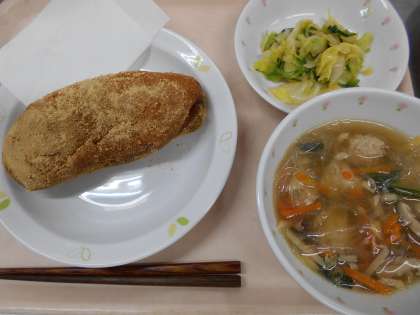 きなこ揚げパン 肉団子入り春雨スープ 野菜の中華風味 牛乳