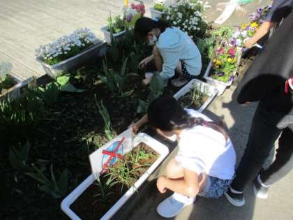 正門の花壇の世話を環境委員会の子どもたちが世話をしてくれています。新しく委員会が始まった5年生や、引き続き委員の6年生が交代で取り組んでいます。今週は、当番の子たちが雑草も抜いてくれていました。地域の方が「きれいに咲きましたね。」と声をかけてくださることもあります。委員会の皆さんのおかげです。ありがとう。