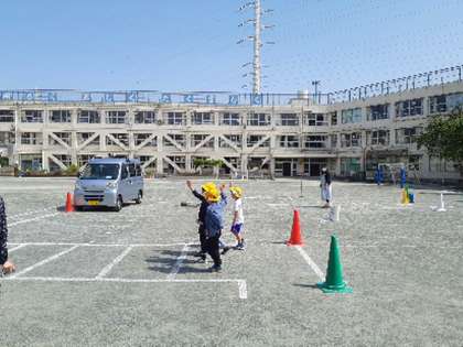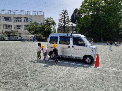 成城警察署のご協力のもと、1年生の歩行訓練を実施しました。一般道で歩行者が歩ける場所は、1.ガードレール等で区切られた歩道 2.白線の内側 3.何もない道路では道路の右側 であることを教えてもらいました。その後は安全な横断歩道の渡り方や見通しの悪い道路に出る時に気を付けることなどを教えてもらい、校庭に描かれた横断歩道や道路を実際に歩きました。横断歩道を渡る時は、信号が青であっても、手を挙げて右、左、右を見て車などが来ないことを確認してから渡ること、青信号が点滅している時は渡らないことをしっかりと実践することができました。これからも今日学んだことを大切にして安全に過ごしてほしいと思います。