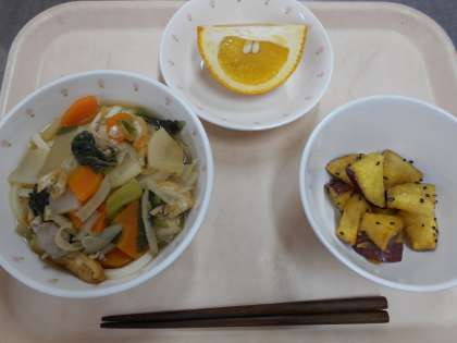 けんちんうどん 大学いも 甘夏みかん 牛乳