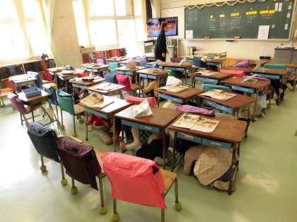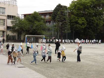 3時間目に今年度最初の避難訓練を実施しました。地震が発生したことを想定し、避難の基本を確認しました。1年生の教室では、放送が入るとすぐにみんな机の下にもぐりました。避難開始の指示があると、おしゃべりすることなく防災ずきんをかぶり整列して校庭に向かうことができました。初めてとは思えないほど立派な姿でした。ほかの学年も、昨年度までの経験を活かし避難しました。なかでも5,6年生からは、高学年として下の学年にお手本を示そうという気持ちが伝わってきました。安全により素早い行動ができるように訓練を重ねていきます。