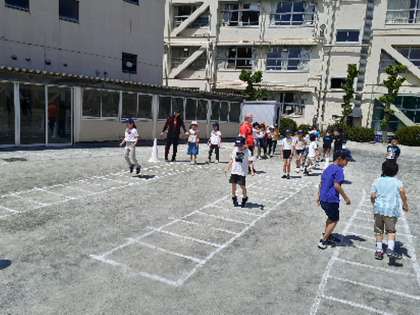第二部は2年生です。20名程が参加しました。一つ一つの運動に俊敏さや力強さを感じます。天気がよく、気温も上がってきましたが、子どもたちは校庭を全力で走れることがうれしそうに最後まで頑張っていました。