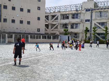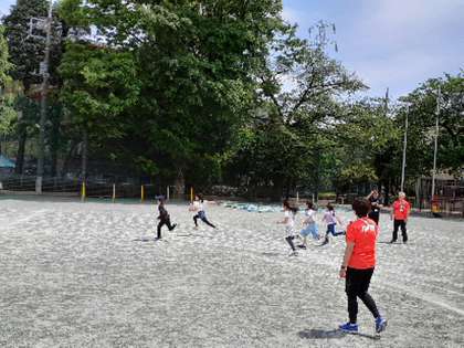 第三部は3年生以上です。約40名が集まりました。3年生以上は曲走路を走る練習もしました。最後の直線でスピードを全開にできるとよいと教わりました。運動会に生かせるといいですね。
