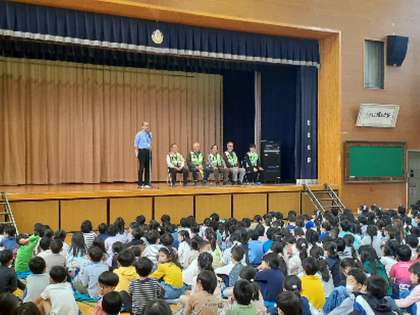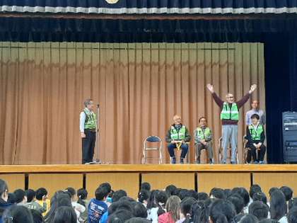 今朝は体育館で全校朝会を行いました。今日は成城自治会の皆様をお招きし、全校児童に紹介しました。長年、成城自治会の皆様は毎週水曜日の子どもたちの下校の見守りを中心に、総合的な学習の時間等の授業協力など、たくさんお力を貸してくださっています。お一人お一人のお名前を紹介していただきました。登下校中や学校にいらした時には元気よく挨拶をするよう指導しました。