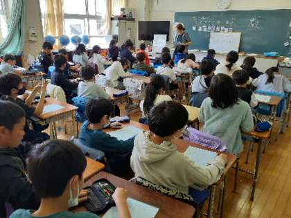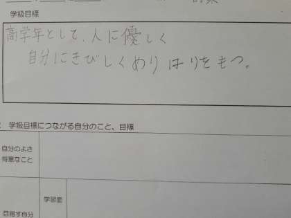 5年生の教室をのぞくと、真剣に何かを書いていました。キャリアパスポートです。キャリアパスポートは、キャリア教育に関わる学習活動について、自らの学習状況やキャリア形成を見通したり、振り返ったりしながら、自身の変容や成長を自己評価していけるよう工夫したワークシートです。6年間ひとつのファイルに入れていき、中学校でも使用していきます。5年生はこの時間が今年度のキャリアパスポートの第一歩を踏み出す時間でした。まずは学級目標に向けて生かせる自分のよさや得意なことを記入し、自分の目指す姿、目標を明確にしていきました。1学期の終わりに今日書いたことについて振り返り、自己評価をしていきます。その後は家庭に持ち帰り、保護者にコメントを記入してもらい、担任からのコメントと合わせて子どもたちに返していきます。また、このキャリアパスポートを基に、夏休み中の個人面談を行います。
