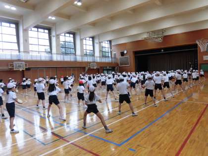 4年生は難度の高いパートの取り出し練習から通しの練習まで先生の指摘する注意事項を意識して、より精度を高めた練習をくり返しました。踊りと声とパーランクの音もよどみなく合わせることができています。微調整をくり返しながらよりよいものに仕上げようと頑張っています。