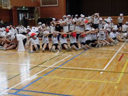 午後、予報通りの雨となってしまい、今日は体育館で運動会の練習をしました。