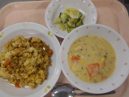 カレーピラフ フレンチサラダ コーンチャウダー 牛乳
