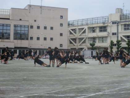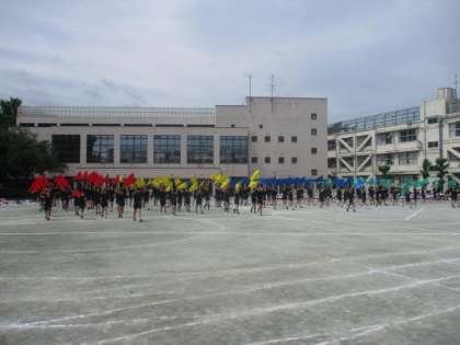6年生「Break Through〜絆をつなぐ〜」では、フラッグを使った動きが、見応えがあり、全員が心を一つに揃えようという気落ちが感じられました。続く個人演技や集団演技も一人一人が指先などの細かい動きにも気を配り、がんばる姿が見られました。