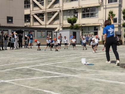 合図に合わせてスタートし、ゴールを目指してまっすぐ力いっぱい走りぬきました。