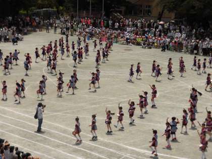 動きもかけ声も最後までぴったりとそろっていました。「周りを見てそろえることを頑張りました。」「難しい動きを何度も練習しました。」など、演技後の子どもたちの感想からも努力を感じました。