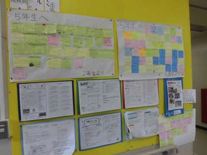 70周年という大きな節目の運動会を終え、その余韻を残しながらも、少しのんびりとした雰囲気が感じられます。校内のあちらこちらには、他学年の演技や競技を見た感想がたくさん掲示されています。