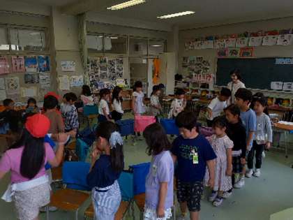 1年生は運動会を終え、クラスのみんながもっとなかよくなるためにというテーマで学級会を開き、いす取りゲームなどで楽しい時間を自分たちでつくることになりました。自分勝手をしない、ケンカをしない、負けても笑顔、この3つがこの時間のルールでした。みんな笑顔でした。自分たちのクラスを自分たちの力でよりよくしていこうという気持ちが高まりました。