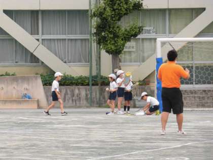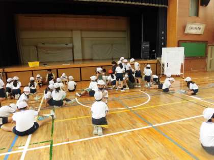 校庭では「ボール投げ」体育館では「腹筋」「立ち幅とび」「体前くつ」の測定を行いました。各自記録用紙をもって、上級生や先生方の指示に従って一生けん命とりくみました。日常生活の中でやっているようであまりやっていない動作を、こうやって記録することでじゅうなん性や筋力などの成長がみてとれると思われます。「ボール投げ」や「立ち幅とび」は慣れていないとコツをつかむのが難しいかもしれません。