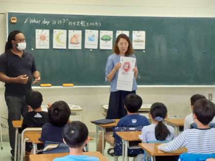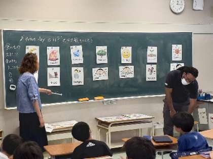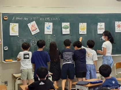 4年生の外国語は、「I like Monday」という単元に入っています。はじめに、英語で早口言葉や発音練習などを行いウォームアップをしました。次に、