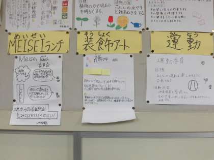 各種委員会の活動目標が職員室前の廊下に貼り出されています。それぞれの委員会が練りに練った活動目標です。それぞれの目標にのっとった活発な活動が期待されます。