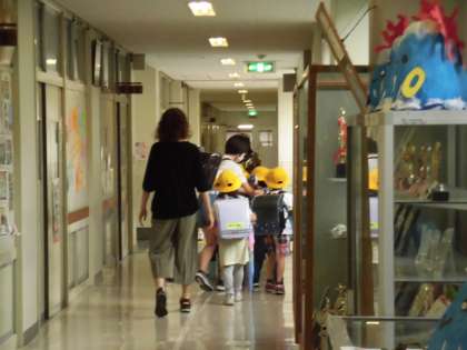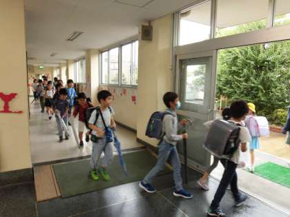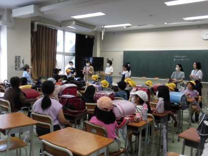 本日5時間目にPTAの方のご協力を得て、校外班に分かれて集団下校を実施しました。はじめに自分の所属する校外班ごとに決められた教室に集まりました。