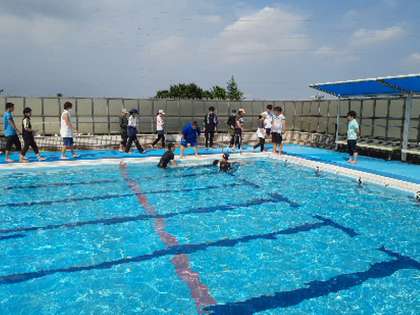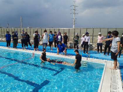 明日から始まる水泳運動領域の授業を前に、プールの環境整備と万が一に備えた緊急時対応訓練を実施しました。指導する教員のそれぞれの役割の確認、救助の仕方、連絡体制の確認等、緊張感をもって訓練しました。明日からのプールでの学習を子どもたちが安心して進められるよう安全第一で取り組んでいきます。