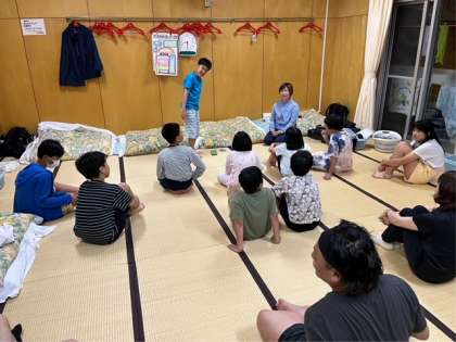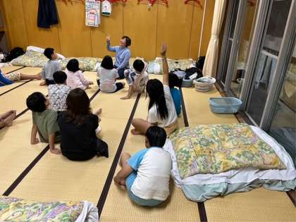 夜の会を終えました。みんな明日、恩賜林公園で、遊具や他の学校の友達と遊ぶのが楽しみだそうです。もうすぐ消灯時刻です。みんな元気です。