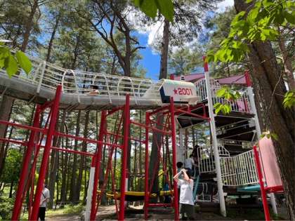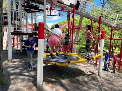 ?恩賜林公園に到着し、遊具遊びが始まりました。魅力的な遊具がいろいろあります。吹く風が心地よいです。