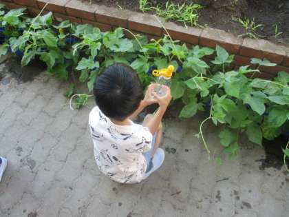 1年生のアサガオや2年生の夏野菜がグングンと育っています。子どもたちがやさしく水をあげたり、葉の様子を確かめたりして愛情たっぷりに育てています。学校公開では、保護者の方に自分の夏野菜が育った様子を教えてあげる子たちもいました。太陽の光をたっぷり浴びて、もっともっと大きくなるのが楽しみですね。