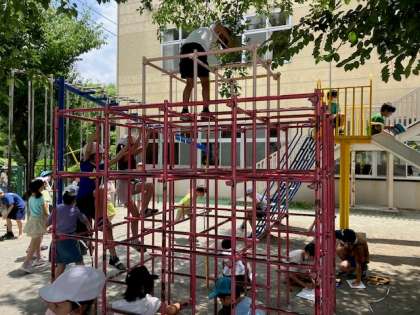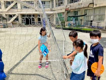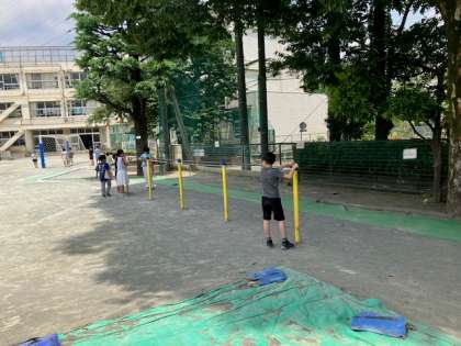 3年生の算数では、長さの学習で校庭に出て巻き尺を使う活動を行いました。ものさしと違い、長い物や周りの長さを簡単に測れる巻き尺のよさを生かして、思い思いの長さを測っていました。「サッカーゴールの周りの長さは13m68cmもあるんだよ」「ジャングルジムの長さは2m40cmだ」など、子どもたちは活動を通して長さを体感して、長さに対する感覚を育んでいました。