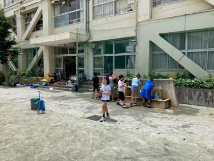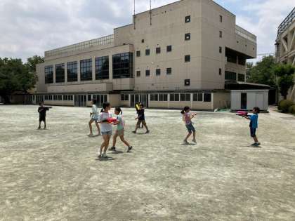 今日は暑くなりました。5年2組は学級活動で「水遊び」をしました。あらかじめ、お家から水鉄砲などの道具を持ってきた子どもたち。着替えも用意し思いっきり水を掛け合いました。まだ梅雨は開けていませんが、一足先に夏らしさを満喫していました。