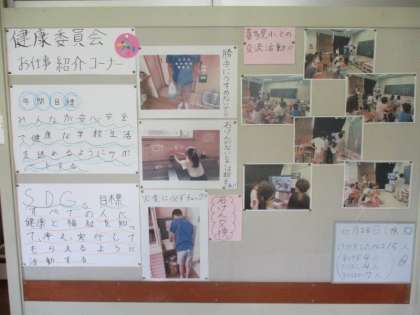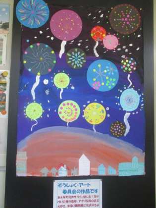 先日の委員会活動を通して、いろいろな取組がされています。健康委員会では、石けんの交換などの日常の取組や、喜多見小学校とのオンラインでの取組の様子などを保健室の廊下に掲示しました。広報委員会では、今年度、明正小に来た先生へのインタビューを「ふじっち新聞」にまとめ、正面玄関に掲示しました。装飾アート委員会では、「花火」の絵をつくり、1年生の教室近くの廊下と職員室の廊下に掲示しました。いよいよ花火の季節が近づいたなと感じます。他の委員会も活動の様子を紹介しています。来校された際には、ぜひご覧ください。