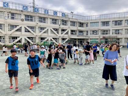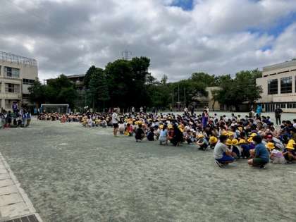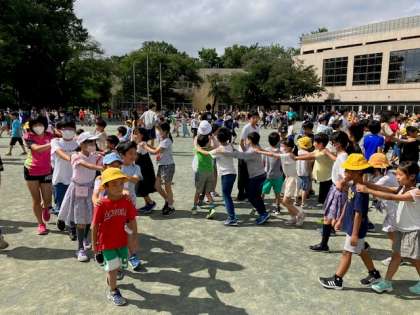 今朝は、校庭で運動委員会による児童集会を行いました。縦割り班ごとに「ムカデ」となり、運動委員会の5,6年生が鬼となって「ムカデ鬼ごっこ」をしました。鬼に列の最後尾にいる人がタッチされないように連携して動き回ります。ムカデの列をくずさないように一緒にムカデを作る仲間のことも考えて動かなければいけません。タッチされても何回でもチャレンジできるルールで楽しみました。運動委員会は今、休み時間にも「スポフェス!」を開催し、いろいろな学年の子に、普段できない運動遊びの場を提供してくれています。全校児童に友達と一緒に体を動かす楽しさを味わわせてくれています。