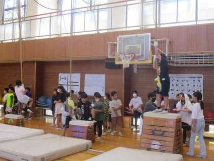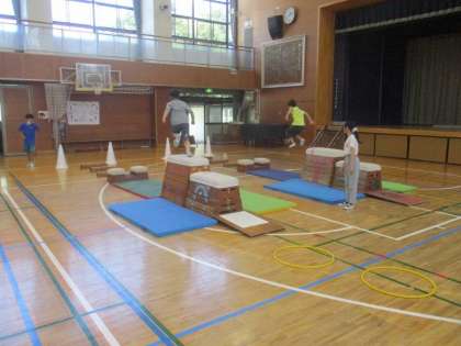 運動委員会のみなさんの企画、運営で、明正小のみんなが運動に親しむための「スポフェス」が行われています。今回は、4年生が楽しむ順番でした。体育館で「ターザンロープ」や「障害物走」、バスケットゴール」を行いました。普段の休み時間や体育の授業では、なかなかできない内容もあり、取り組んでいるみんなは、笑顔がいっぱいでした。時間をかけて準備を進めてきてくれた運動委員会のみなさん、ありがとうございます。