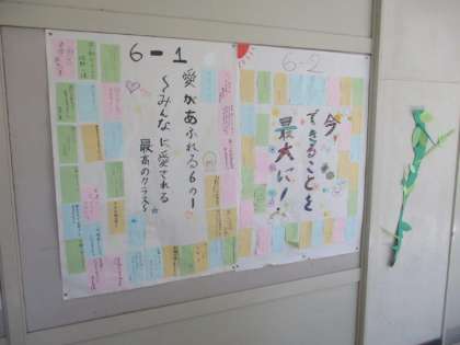 7月7日は「七夕」です。企画委員の皆さんが中心となり、各学級でお願いごとを書きました。一人一人のお願いごとと学級のお願いごとをまとめました。「みんなで元気に中学校へ行けますように。」「一年間、笑顔で幸せな日々を送れますように。」「自転車に乗れるようになりますように。」「足がもっと速くなりますように。」…いろいろなお願いごとがあります。叶うといいですね。