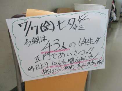 今朝は1学期最後の「おはようDay」でした。朝から気温が高かったのですが、気持ちのいいあいさつをたくさん聞くことができました。6年生が中心となってあいさつを響かせようと取り組んでくれています。最高学年として明正小をリードしてくれていて、とてもうれしいです。夏休みまで、登校日はあと11日です。1学期のまとめをしっかりとして夏休みを迎えられるよう進めていきます。