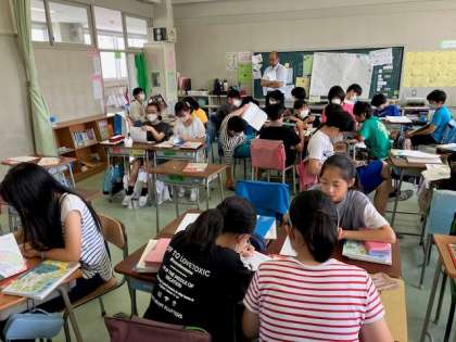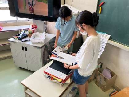 6年生の教科「日本語」では伝統芸能について、個人課題を設定し、調べる活動を進めています。歌舞伎、落語、能、浄瑠璃等、たくさんある伝統芸能を知り、そこにある日本ならではの価値観やそのよさ、美しさを味わっていくことがねらいです。課題が同じ友達と手分けして調べる人、個人で課題を追究している人、進め方もそれぞれです。最後は調べた成果をみんなで共有していきます。