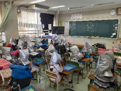 本日は避難訓練で、大規模地震発生時を想定した、引き取り、引き渡し訓練を実施しました。東日本大震災の時に実際に引き渡しをしましたが、完了するまでには大変時間がかかりました。いつ起こるか分からない震災への備えとして、引き取り方法や待つ時間に対する心構えについてもご家庭で話し合っていただければと思います。